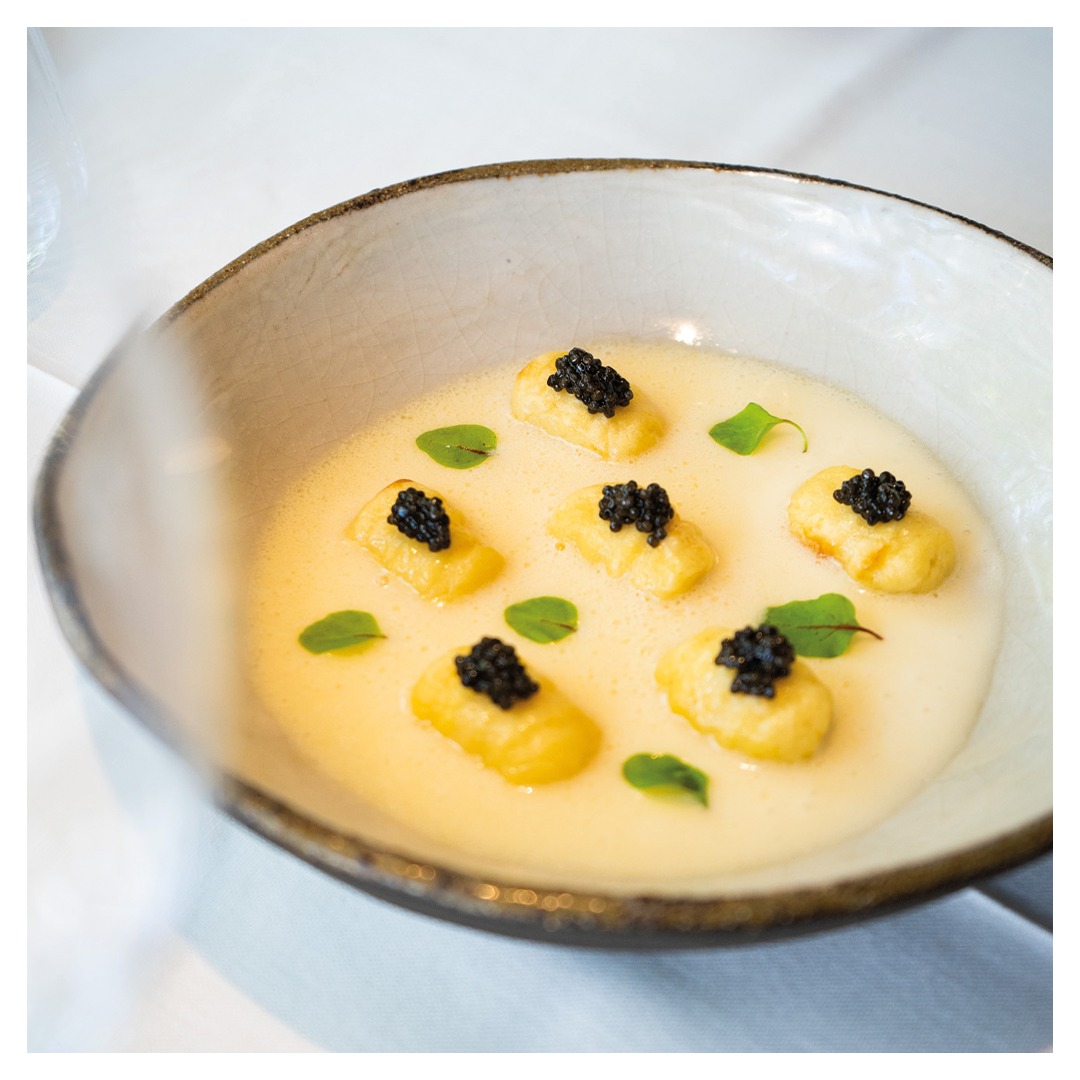Como ya hemos comentado, la sala de Areia, en la que se cuida cada detalle, es del más alto nivel, y disponen de varios platos terminados a la vista del cliente. Además, han seleccionado una excelente carta de vinos con más de 400 referencias y una cuidada selección de destilados y coctelería.