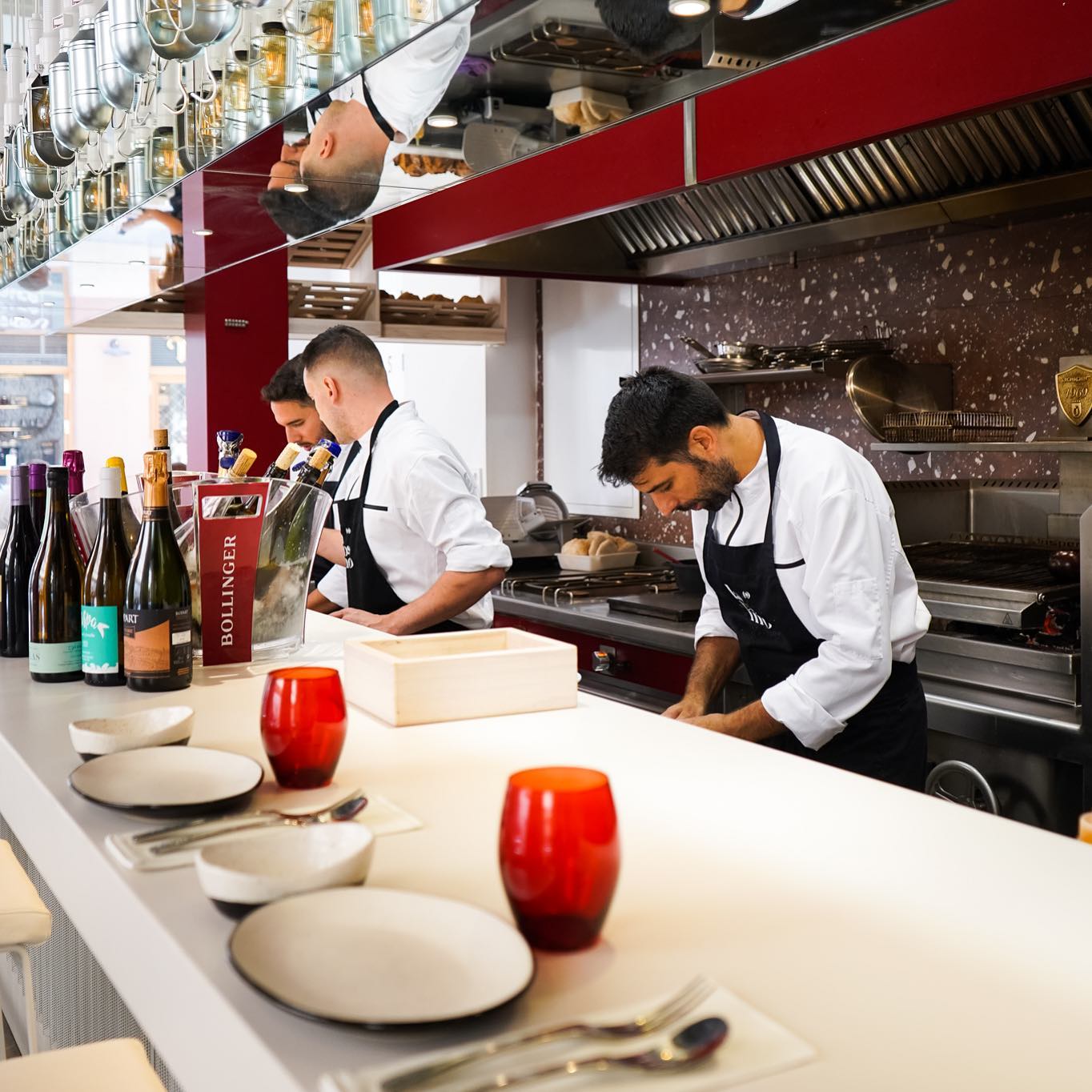 Con su universal y popular lema “guisa que te guisa” que Dani Carnero lleva por bandera ha creado una carta corta con platos desnudos de artificios y centrados en el producto principal como la mortadela de Bolonia con chantilly de lima; el puerro a la carbonara, yema curada y nube de parmesano o el abanico con lácteo de pepinillos y espinacas. Además, junto a la descripción de cada plato incluye el origen del producto principal, esto es, el proveedor con el que trabaja Dani Carnero.