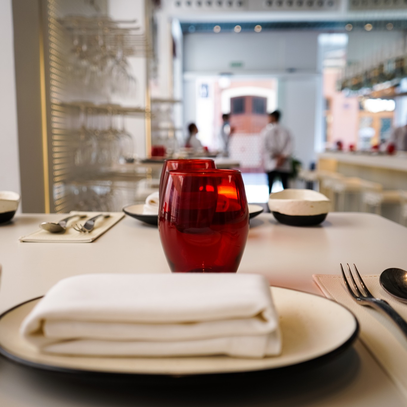 El local tiene una decoración minimal con un pulcro blanco en paredes, barra y mesas. Éstas últimas son en su mayoría altas lo que sugiere un espacio gastronómico informal.