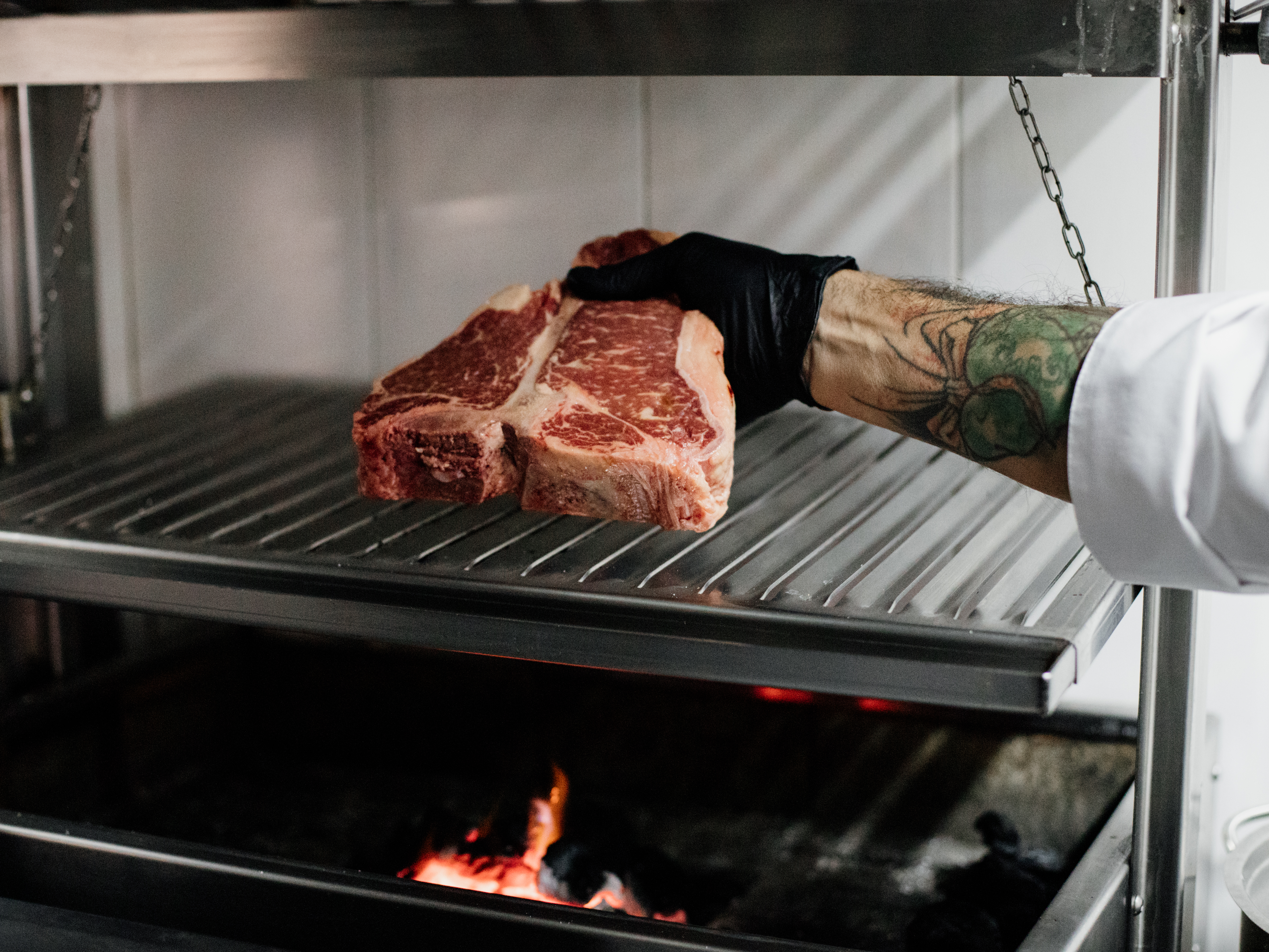 Entre los fijos de su carta, también están las distintas piezas de carnes que pasa en carbón de encina y sugerencias que cambian según mercado y temporada. Cabe destacar que Quiñones menaje bien la casquería que toma protagonismo, sobre todo, en los meses de más frío.